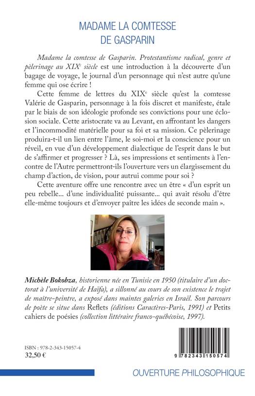 Cette thèse croise trois différents champs d'intérêt égal : le Pèlerinage vers la Terre sainte, le Radicalisme protestant et le genre. Le XIXè siècle a accueilli cette audacieuse dame déterminée à faire valoir les principes radicaux sur la nouvelle vision d'amour du christianime, plus précisément le protestantisme du Réveil. La comtesse de Gasparin étale ses convictions pour une éclosion sociale, elle revendique, soutenue par sa croyance assidue au Christ, une amélioration de l'état de l'être humain, et de la femme en particulier.