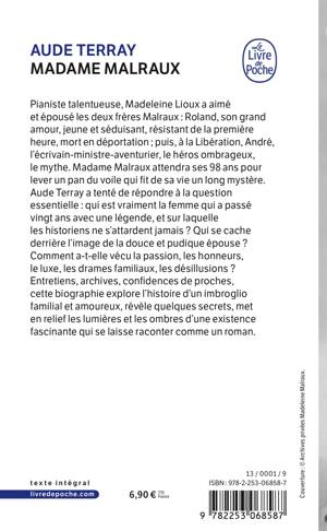 Pianiste talentueuse, Madeleine Lioux a aimé et épousé les deux frères Malraux : Roland, son grand amour, jeune et séduisant, résistant de la première heure, mort en déportation ; puis à la Libération, André, l'écrivain-ministre-aventurier, le héros ombrageux, le mythe.