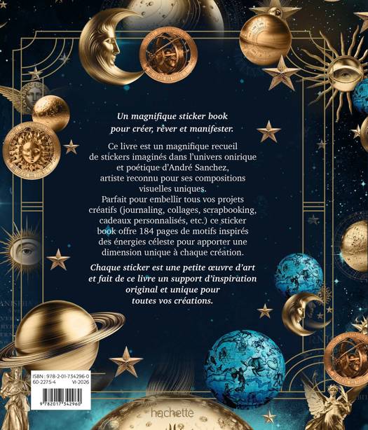 Ce livre est un magnifique recueil de stickers imaginés dans l’univers onirique et poétique d’André Sanchez, artiste reconnu pour ses compositions visuelles uniques. Parfait pour embellir tous vos projets créatifs (journaling, collages, scrapbooking, cadeaux personnalisés, etc.) ce sticker book offre 184 pages de motifs inspirés des énergies céleste pour apporter une dimension unique à chaque création.