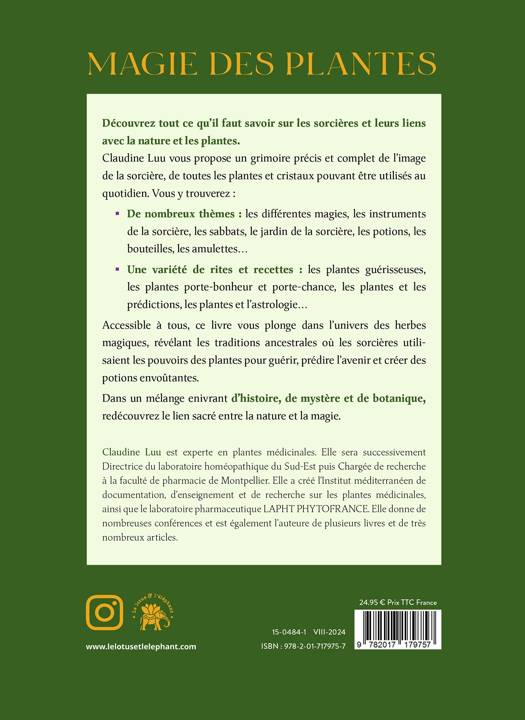 Découvrez tout ce qu’il faut savoir sur les sorcières et leurs liens avec la nature et les plantes.Claudine Luu vous propose un grimoire précis et complet de l’image de la sorcière, de toutes les plantes et cristaux pouvant être utilisés au quotidien. Vous y trouverez :