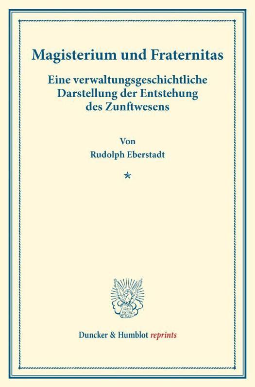 Eine Verwaltungsgeschichtliche Darstellung Der Entstehung Des Zunftwesens. (Staats- Und Socialwissenschaftliche Forschungen XV.2)