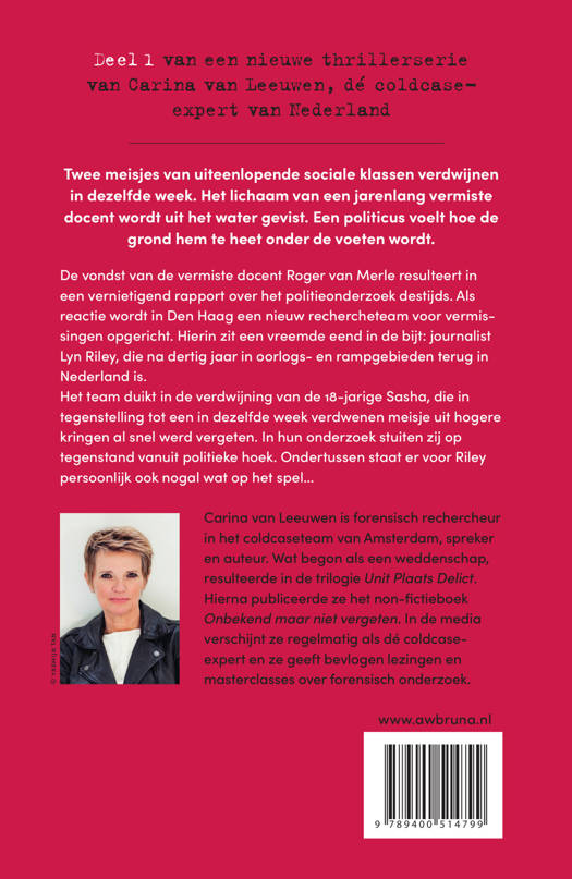 De vondst van de vermiste docent Roger van Merle resulteert in een vernietigend rapport over het politieonderzoek destijds. Als reactie wordt in Den Haag een nieuw rechercheteam voor vermissingen opgericht. Hierin zit een vreemde eend in de bijt: journalist Lyn Riley, die na dertig jaar in oorlogs- en rampgebieden terug in Nederland is.