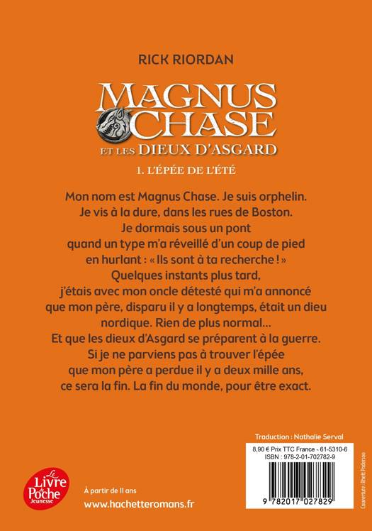 Le jour où Magnus Chase apprend qu’il est le fils d’un dieu nordique, le moins que l’on puisse dire c’est qu’il est plutôt surpris ! Il semblerait que les dieux d’Asgard se préparent à entrer en guerre. Or c’est lui, Magnus, qui doit empêcher la fin du monde en mettant la main sur une épée disparue il y a des milliers d’années ! Comme si tout cela ne suffisait pas, voilà qu’un géant de flammes attaque la ville, forçant Magnus à choisir entre sa vie et celle de milliers d’innocents. Mais, pour un demi-dieu, qu’est-ce que la mort sinon le début d’une nouvelle vie ? Magnus se réveille à l’Hôtel Vallhala, le paradis des guerriers : sa première grande aventure peut commencer.