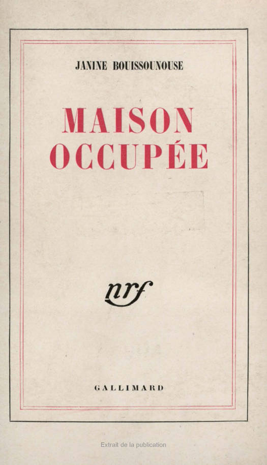 La première condition à laquelle doit répondre un Journal intime est de n'avoir pas été écrit en vue d'une publication. C'est le cas de Maison occupée. Janine Bouissounouse, ne pouvant correspondre avec son mari, résolut de noter à son intention, jour après jour, tous les les évènements de sa vie, à partir du moment où, rentrant de l'exode, elle trouva sa maison des environs de Paris pleine de soldats allemands. L'existence quotidienne avec ces soudards, la lutte contre les difficultés et les misères de ces temps nouveaux, la physionomie de la petite ville, les réactions de ses diverses classes sociales devant la défaite et l'occupation, voilà ce qui constitue la trame de Maison occupée, du moins dans sa première partie, cependant que de fréquentes visites à Paris, l'évocation des figures de la Résistance devenues légendaires, ajoutent encore à l'intérêt du livre. Mais ce qui en fait un document jusqu'ici unique, c'est la relation du travail avec des Allemands antinazis (certains épisodes ont paru dans LesTemps Modernes sous le titre Trois AlIemands contre l'Allemagne). Et peu à peu l'histoire se corse, le rythme du récit s'accélère : l'auteur, impliquée dans une affaire d'espionnage, échappe miraculeusement à la Gestapo. L'originalité de ce livre, c'est qu'au drame vécu personnellement par l'auteur, se mêle la tragédie de ces Allemands d'exception, prenant parti au péril de leur vie - l'un fut exécuté - pour la France et ses Alliés et rejetant dans leur désespoir jusqu'à' la possibilité d'une bonne Allemagne.