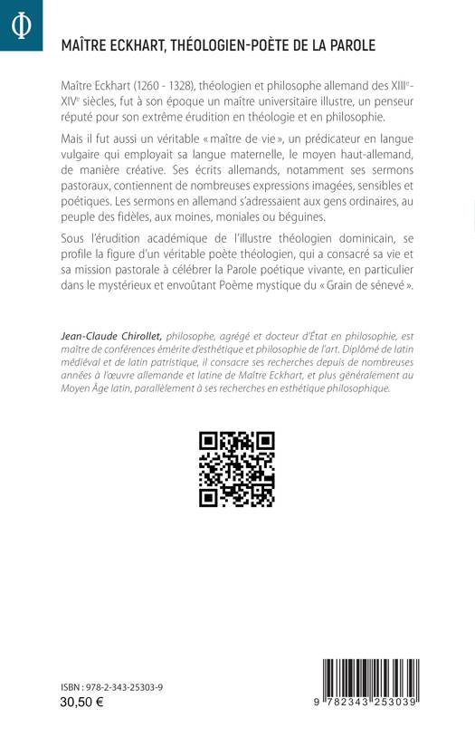 Maître Eckhart (1260 - 1328), théologien et philosophe allemand des XIIIe-XIVe siècles, fut à son époque un maître universitaire illustre, un penseur réputé pour son extrême érudition en théologie et en philosophie. Mais il fut aussi un véritable « maître de vie », un prédicateur en langue vulgaire qui employait sa langue maternelle, le moyen haut-allemand, de manière créative. Ses écrits allemands, notamment ses sermons pastoraux, contiennent de nombreuses expressions imagées, sensibles et poétiques. Les sermons en allemand s’adressaient aux gens ordinaires, au peuple des fidèles, aux moines, moniales ou béguines. Sous l’érudition académique, se profile la figure d’un véritable poète théologien, qui a consacré sa vie et sa mission pastorale à célébrer la Parole poétique vivante.