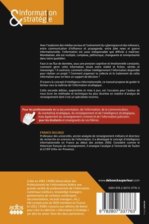 Pour les professionnels de la documentation, de l’information, de la communication, du marketing stratégique, du renseignement et de l’intelligence stratégiques, mais également du renseignement criminel et de l’information judiciaire ; pour les étudiants et enseignants de ces filières.