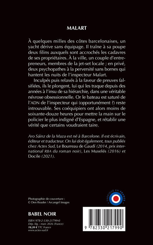 À quelques milles des côtes barcelonaises, un yacht dérive sans équipage. Il traîne à sa poupe deux filins auxquels sont accrochés les cadavres de ses propriétaires. À la ville, un couple d'entrepreneurs, membres de la jet-set locale ; en privé, deux psychopathes à la perversité sans bornes qui hantent les nuits de l'inspecteur Malart. Inculpés puis relaxés à la faveur de preuves falsifiées, ils le plongent, lui qui les traque depuis des années à l'insu de sa hiérarchie, dans une véritable névrose obsessionnelle. Or le bateau est saturé de l'ADN de l'inspecteur qui (opportunément ?) reste introuvable. Ses coéquipiers ont alors moins de soixante-douze heures pour mettre la main sur le policier le plus indigné d'Espagne, et rétablir une vérité que certains voudraient taire.