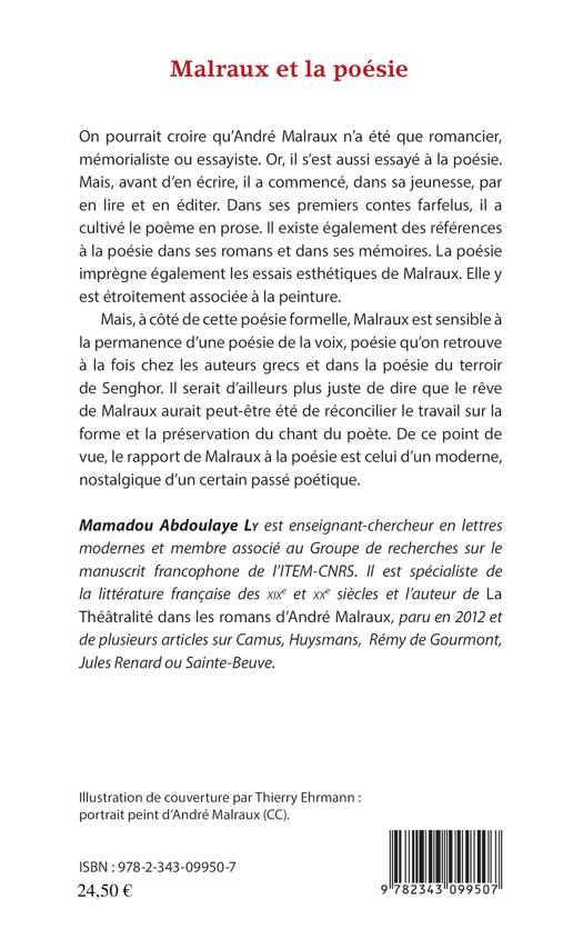 André Malraux n'a pas été que romancier, mémorialiste ou essayiste. Il s'est aussi essayé à la poésie. Dans sa jeunesse, il a commencé à en lire puis à en éditer. Poème en prose, références à la poésie dans ses romans, dans ses mémoires, et dans ses essais esthétiques : Malraux n'a jamais cessé de s'y intéresser. A côté de cette poésie formelle, il s'est aussi penché sur les auteurs grecs et Senghor. Un travail sur la voix, sur le chant, qui le placerait dans le camp des modernes, nostalgiques d'un certain passé poétique.