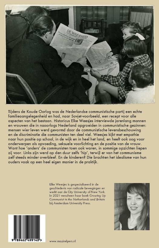 Tijdens de Koude Oorlog was de Nederlandse communistische partij een echte familieaangelegenheid en had, naar Sovjet-voorbeeld, een recept voor alle aspecten van het bestaan. Historicus Elke Weesjes interviewde jarenlang mannen en vrouwen die in naoorlogs Nederland opgroeiden in communistische gezinnen: mensen wier leven werd gevormd door de communistische levensbeschouwing en de discriminatie die communisten ten deel viel. Weesjes kijkt met empathie naar hun positie op school, in de wijk en in heel het land, en heeft ook oog voor onderwerpen als opvoeding, seksuele voorlichting en de positie van de vrouw. Want hoe ‘anders’ de communisten toen ook waren, in sommige opzichten liepen zij voor. Links zijn werd op den duur zelfs ‘hip’, terwijl er van het communisme zelf steeds minder overbleef. En de kinderen? Die brachten het idealisme van hun ouders vaak op een heel eigen manier in de praktijk.
