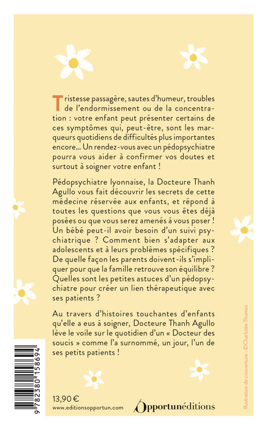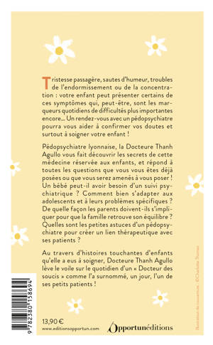 Au travers d'histoires touchantes d'enfants qu'elle a eus à soigner, Docteure Thanh Agullo lève le voile sur le quotidien d'un "Docteur des soucis" comme l'a surnommé, un jour l'un de ses petits patients !