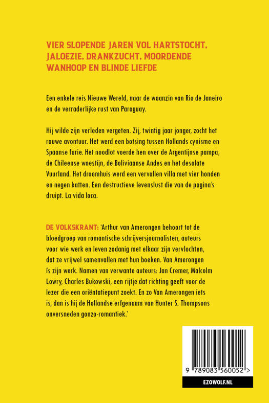 Een enkele reis Nieuwe Wereld, naar de waanzin van Rio de Janeiro en de verraderlijke rust van Paraguay. Hij wilde zijn verleden vergeten. Zij, twintig jaar jonger, zocht het rauwe avontuur. Het werd een botsing tussen Hollands cynisme en Spaanse furie. Het noodlot voerde hen over de Argentijnse pampa, de Chileense woestijn, de Boliviaanse Andes. Het droomhuis werd een vervallen villa met vier honden en negen katten. Vier slopende tropenjaren vol hartstocht, jaloezie, drankzucht, moordende wanhoop en blinde liefde. La vida loca.