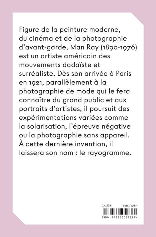 Figure de la peinture moderne, du cinéma et de la photographie d'avant-garde, Man Ray (1890-1976) est un artiste américain des mouvements dadaïste et surréaliste. Dès son arrivée à Paris en 1921, parallèlement à la photographie de mode qui le fera connaître du grand public et aux portraits d'artistes, il poursuit des expérimentations variées comme la solarisation, l'épreuve négative ou la photographie sans appareil. À cette dernière invention, il laissera son nom : le rayogramme.