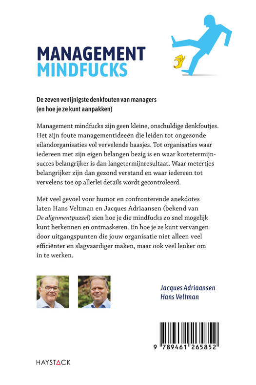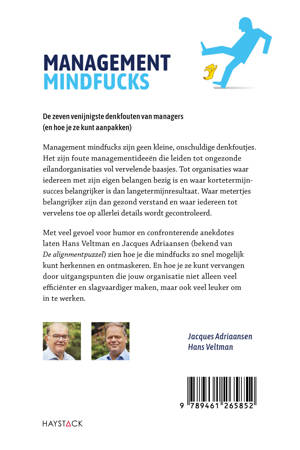 Met veel gevoel voor humor en confronterende anekdotes laten Hans Veltman en Jacques Adriaansen, bekend van 'De alignmentpuzzel', zien hoe je die mindfucks zo snel mogelijk kunt herkennen en ontmaskeren. En hoe je ze kunt vervangen door uitgangspunten die jouw organisatie niet alleen veel efficiënter en slagvaardiger, maar ook veel leuker om in te werken.