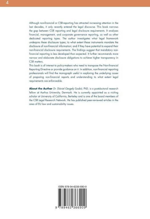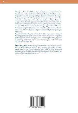 Although non-financial or Corporate Social Responsibiliy (CSR) reporting has attracted increasing attention in the last decades, it only recently entered the legal discourse. This book narrows the gap between CSR reporting and legal disclosure requirements. It analyzes financial, management, and corporate governance reporting, as well as other dedicated reporting types. The author investigates what legal framework underpins these disclosure types; to what extent these instruments mandate the disclosure of non-financial information; and if they have potential to expand their non-financial disclosure requirements. The findings suggest that mandatory non-financial reporting is less developed than expected. This book will be of interest to policy-makers who need to transpose the Non-Financial Reporting Directive or provide guidance on it. In addition, non-financial reporting professionals will find this monograph useful in exploring the underlying issues of preparing non-financial reports and understanding to what extent legal requirements are enforceable. (Series: ?Dovenschmidt Monographs, Vol. 4) [Subject: EU?Law, Corporate Law]