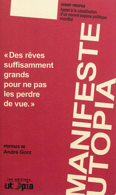 Utopia revendique cette utopie qui considère que la réflexion alliée à l'imagination arrivera à fédérer un mouvement fort, solidaire, capable de proposer une véritable alternative au capitalisme et porteur d'émancipation individuelle et collective. La crise qui a éclaté en 2008, les réactions conservatrices des États et de la finance, les mesures d'austérité imposées aux populations et l'échec de la lutte contre le dérèglement climatique exigent à la fois reconquête des idées, résistances, ruptures et propositions. Le XXIe siècle sera social, écologique et convivial ou il sera celui des catastrophes naturelles et humaines.