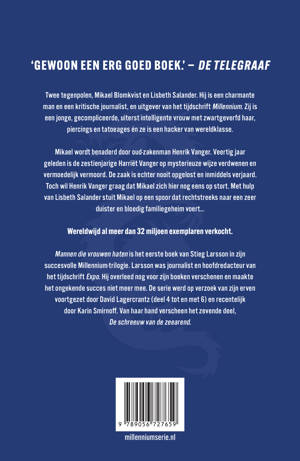 <>Twee tegenpolen, Mikael Blomkvist en Lisbeth Salander. Hij is een charmante man en een kritische journalist, en uitgever van het tijdschrift Millennium. Zij is een jonge, gecompliceerde, uiterst intelligente vrouw met zwartgeverfd haar, piercings en tatoeages én ze is een hacker van wereldklasse.