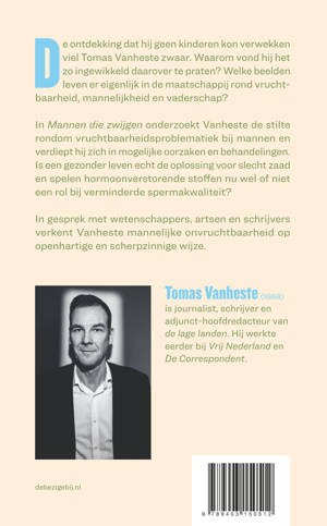 Toen Tomas Vanheste ontdekte dat hij geen kinderen kon verwekken, vond hij het erg ingewikkeld om daarover te praten. Waarom viel dat hem zo zwaar? Welke beelden leven er eigenlijk in de maatschappij rond vruchtbaarheid, mannelijkheid en vaderschap? In Mannen die zwijgen onderzoekt Vanheste het stigma rondom vruchtbaarheidsproblematiek bij mannen en verdiept hij zich in mogelijke oorzaken en behandelingen. Is een gezonder leven echt de oplossing voor slecht zaad en spelen hormoonverstorende stoffen nou wel of niet een rol bij verminderde spermakwaliteit?