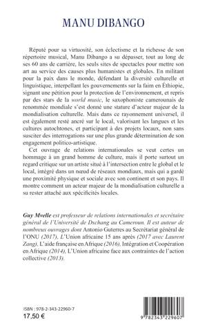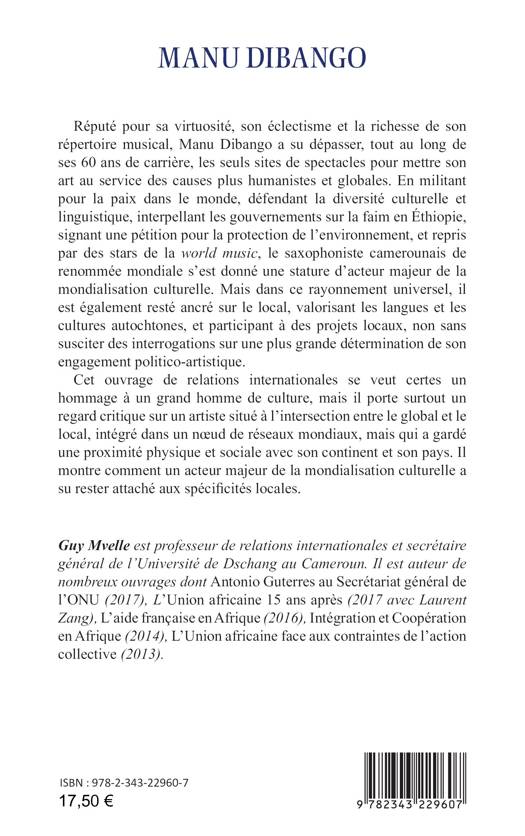 Manu Dibango, en militant pour la paix dans le monde, défendant la diversité culturelle et linguistique, interpellant les gouvernements sur la faim en Éthiopie, signant une pétition pour la protection de l’environnement, s’est donné une stature d’acteur majeur de la mondialisation culturelle. Mais dans ce rayonnement universel, il est également resté ancré sur le local, valorisant les langues et les cultures autochtones, et participant à des projets locaux. Cet ouvrage montre comment un acteur majeur de la mondialisation culturelle a su rester attaché aux spécificités locales.