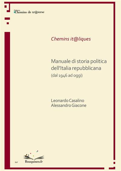 Questo Manuale di storia politica dell’Italia repubblicana nasce dall’esperienza concreta dell’insegnamento nelle università francesi. Come spiegare a degli studenti che non hanno mai studiato prima la storia italiana le complicate vicende italiane degli ultimi 70 anni ? Come fare per non perdersi nelle troppe trame segrete e nei cambiamenti tumultuosi del sistema politico ?
