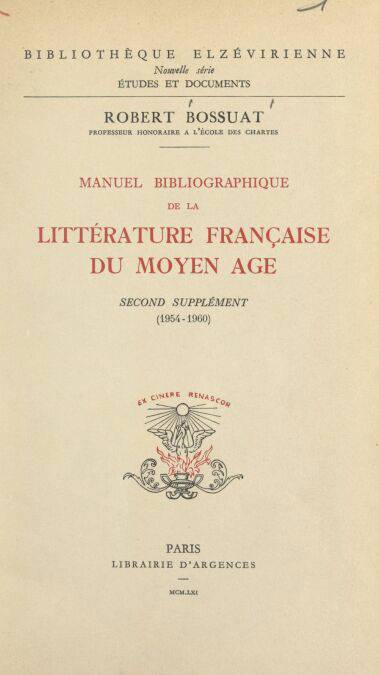 4. Manuel bibliographique de la littérature française du Moyen Âge : second supplément (1954-1960)