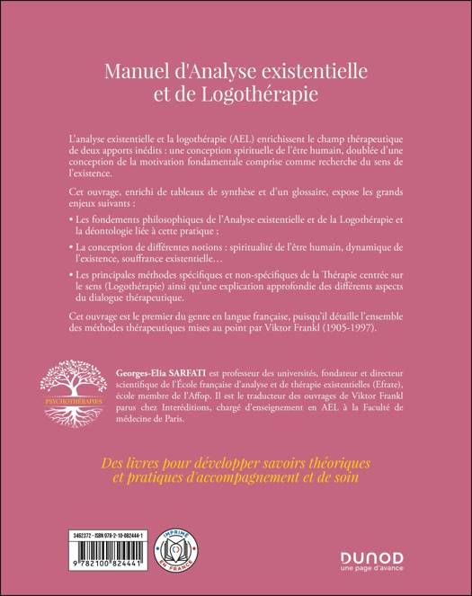 L’originalité de l’Analyse existentielle ou logothérapie – fondée par Viktor Frankl – est de mettre en évidence que, loin d’être seulement une question philosophique, la question du ‘’sens de la vie’’ est aussi et avant tout un enjeu pour la santé mentale des individus. La thérapie par le sens - ou logothérapie - recherche les ressources de la personne et utilise le dialogue socratique. Premier ouvrage de langue française conçu sous la forme d’un Manuel pratique destiné aux thérapeutes, soignants et spécialistes de la relation d’aide, qui met l’accent sur la pédagogie avec des exposés explicatifs, des questionnaires et des exemples précis.