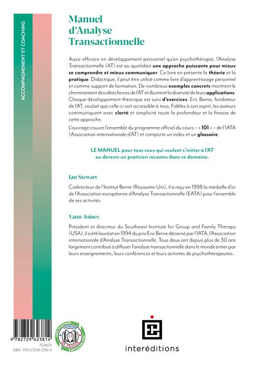 Le livre de référence depuis sa parution en 1991 pour ceux qui veulent s’initier à l’AT ou devenir un praticien reconnu dans ce domaine. Le manuel couvre l’ensemble du programme officiel du cours – « 101 » – de l’IATA (Association internationale d’AT) et comporte un index et un glossaire.
