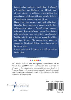 Complet, clair, pratique et synthétique, le Manuel d’Anesthésie loco-Régionale du CNEAR fournit aux internes et médecins anesthésistes les connaissances indispensables en anesthésie loco-régionale pour leur pratique quotidienne.