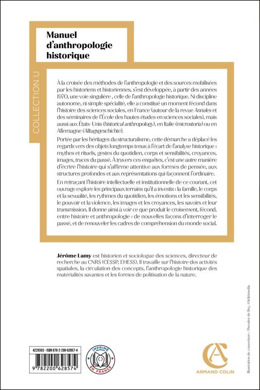 À la croisée des méthodes de l’anthropologie et des sources mobilisées par les historiens et historiennes, s’est développée, à partir des années 1970, une voie singulière : l’anthropologie historique. Ni discipline autonome, ni simple spécialité, elle a constitué un moment fécond dans l’histoire des sciences sociales, en France (autour de la revue Annales et des séminaires de l’École des hautes études en sciences sociales), mais aussi aux États-Unis (historical anthropology), en Italie (microstoria) ou en Allemagne (Alltagsgeschichte). Portée par les héritages du structuralisme, cette démarche a déplacé les regards vers des objets longtemps tenus à l’écart de l’analyse historique : mythes et rituels, gestes du quotidien, corps et sensibilités, croyances, images, traces du passé. À travers ces enquêtes, c’est une autre manière d’écrire l’histoire qui s’affirme attentive aux formes de pensée, aux structures profondes et aux représentations qui façonnent l’ordinaire. En retraçant l’histoire intellectuelle et institutionnelle de ce courant, cet ouvrage explore les principaux terrains qu’il a investis : la famille, le corps et la sexualité, les rythmes du quotidien, les émotions et les sensibilités, le pouvoir et la violence, les images et les croyances, les savoirs et leur transmission. Il donne ainsi à voir ce que produit le croisement, fécond, entre histoire et anthropologie : de nouvelles façons d’interroger le passé, et de renouveler les cadres de compréhension du monde social.