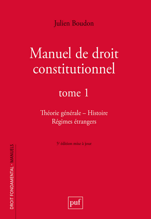 L’ouvrage correspond au programme du premier semestre de la première année des études juridiques dans les Facultés de droit et dans les Instituts d’études politiques. Il présente les grandes notions théoriques qui servent de fondations au droit constitutionnel (la Constitution, l’État, la souveraineté, la représentation, la séparation des pouvoirs, le suffrage) telles qu’éclairées par l’histoire depuis l’époque moderne. Puis il s’intéresse à cinq régimes qui sont autant de types constitutionnels. D’abord trois régimes étrangers qui illustrent deux modèles classiques : le régime parlementaire (Royaume-Uni, Allemagne) et le régime dit présidentiel (États-Unis). Puis deux régimes français de la fin du XIXe siècle et de la première moitié du XXe siècle : la IIIe République et la IVe République dont la connaissance est indispensable à la compréhension de la Ve République, qui fait l’objet du tome 2 de ce manuel.