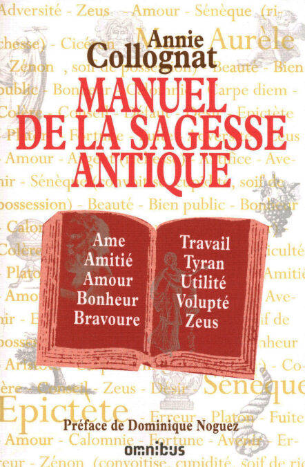 Les leçons de sagesse des penseurs de l'antiquité via un dictionnaire, de Action à Zeus, les 50 citations essentielles, et une anthologie des grands philosophes grecs et latins (Epicure, Sénèque, Epictète, Marc Aurèle...) Manuel de la sagesse antiqueDictionnaire de la sagesse antique - L'essentiel en cinquante citations - Les Sept Sages - Les sages associés - Pythagore - Epicure - Sénèque, Apprendre à vivre - Sénèque, La Vie heureuse - Epictète, Ce qui dépend de nous - Marc Aurèle, Pensées pour moi-mêmeLa sagesse, pour les penseurs grecs et latins de l'antiquité, c'est apprendre à vivre, découvrir l'harmonie, savoir dompter ses passions néfastes et les comprendre : en bref, acquérir lucidité et humilité. Dans notre monde moderne épris de vitesse, une telle quête reste plus que jamais d'actualité. Découvrons ces voix si diverses venues de l'Antiquité et réunies dans un dictionnaire à feuilleter au gré des affinités : poètes, moralistes, philosophes, fabulistes ; écoutons les conseils que les grands sages ont donné à leurs disciples (Pythagore, Epicure, Epictète), à leurs amis (Sénèque), à eux-mêmes (Marc Aurèle), car c'est aussi à nous qu'ils s'adressent dans ces textes réunis sous forme d'anthologie. Préface de Dominique Noguez Avant-propos d'Annie Collognat