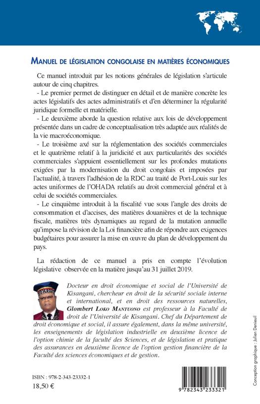 Ce manuel définit les actes législatifs et administratifs et leur régularité juridique. Il aborde la question relative aux lois de développement, puis la réglementation des sociétés commerciales, leur juridicité et leurs particularités. Enfin il introduit la fiscalité vue sous l'angle des droits de consommation et d'accises, des matières douanières et de la technique fiscale.