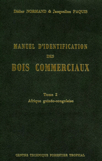 L'objectif de ce manuel est de faciliter l'identification des bois commerciaux de la forêt guinéo-congolaise. Au chapitre 2 figurent des éléments d'un fichier de cartes perforées jouant le rôle de clé d'identification à entrées multiples. Un fonds de fichier peut être constitué en rapportant sur des cartes perforées du modèle indiqué le relevé chiffré des caractéristiques anatomiques des 248 espèces citées sélectionnées. Ce relevé illustré par 62 planches de microphotos de sections transversales donne une vision globale de la répartition des 248 espèces.