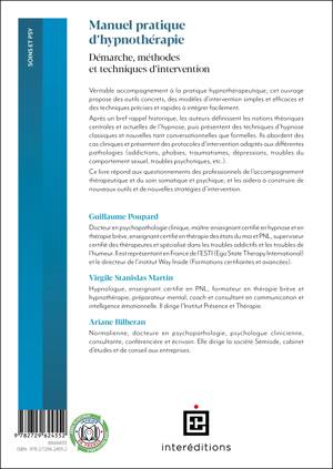 L’hypnose connaît depuis quelques années un regain d’attention et d’intérêt de la part des professionnels du soin mais aussi du grand public qui mesure la pertinence de cette approche ouverte, efficace et respectueuse de l’écologie psychique. Véritable accompagnement à la pratique hypnothérapeutique, cet ouvrage propose des outils concrets, des modèles d’intervention simples et efficaces et des techniques précises et rapides à intégrer facilement. Après un bref rappel historique, les auteurs définissent les notions théoriques centrales et actuelles de l’hypnose, puis présentent des techniques d’hypnose classiques et nouvelles tant conversationnelles que formelles. Ils abordent des cas cliniques et présentent des protocoles d’intervention adaptés aux différentes pathologies (addictions, phobies, traumatismes, dépressions, troubles du comportement sexuel, troubles psychotiques…). Ce livre répond aux questionnements des professionnels de l’accompagnement thérapeutique et du soin somatique et psychique, et les aidera à construire de nouveaux outils et de nouvelles stratégies d’intervention.