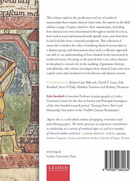 This volume explores the production and use of medieval manuscripts that contain classical Latin texts. Six experts in the field address a range of topics related to these manuscripts, including how classical texts were disseminated throughout medieval society, how readers used and interacted with specific texts, and what these books look like from a material standpoint. This collection of essays also considers the value of studying classical manuscripts as a distinct group, and demonstrates how such a collective approach can add to our understanding of how classical works functioned in medieval society. Focusing on the period 800-1200, when classical works played a crucial role in the teaching of grammar, rhetoric, and dialectics, this volume investigates how classical Latin texts were copied, used, and circulated in both discrete and shared contexts.