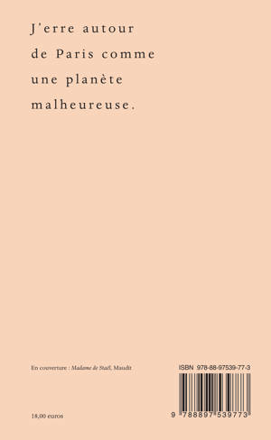 Dix années d’exil est l’histoire du voyage rocam- bolesque de madame de Staël depuis son château de Coppet en Suisse, devenu lieu de sa résidence sur- veillée, jusqu’à Londres via Saint-Pétersbourg et Stockholm (les ports français lui étant interdits). Il fut publié, incomplet et posthume, en 1821. Il couvre les années 1797 à 1812 : des causes de l’exil à la fuite en Angleterre, préparée en secret, retardée par une grossesse inattendue et finalement entre- prise le 23 mai 1812, quand elle monte enfin dans son carrosse — avec un éventail pour seul bagage — vers Londres. Pour tromper la police napoléonien- ne, d’une première version de ce livre, qui était d’abord un portrait de l’Empereur, madame de Staël fit faire plusieurs et différentes copies cryptées. Avec sa secrétaire Fanny Randall elle recopia le texte sous l’apparence d’une œuvre sur le XVIIe siècle anglais, ou de l’époque d’Elisabeth d’Angleterre, s’employant à déguiser les noms des personnages et des lieux, rem- plaçant Napoléon par Cromwell ou par Elisabeth 1e, le duc d’Enghien par Marie Stuart — tout le monde peint comme dans un bal masqué. C’est le manuscrit de cette première version cryptée de Dix années d’exil, conservé au château de Coppet — preuve matérielle de la persécution napoléonienne — qui paraît ici dans la transcription encore inédite pour ce qui est de la première partie, con- sacrée au portrait de Bonaparte à Paris ; la seconde partie, qui relate les voyages à Berlin et en Italie de 1803 à 1805 (les années 1804 à 1810 n’existent que dans la première version), avait déjà été transcrite sur un manuscrit un peu différent en 1996, pour l’édition dirigée par Simone Balayé. Cette nouvelle édition rassemble pour la première fois tous les textes cryptés, « déguisés » selon la jolie métaphore de madame de Staël.