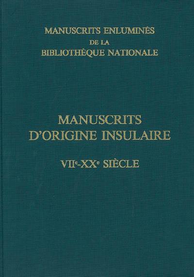 Recense et décrit les manuscrits enluminés d'origine insulaire conservés au Département des manuscrits de la Bibliothèque nationale.