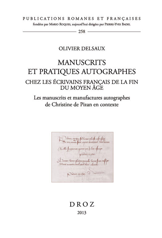 Si le mot autographe n’existe pas en français médiéval, nous savons que des manuscrits entièrement ou partiellement transcrits de la main d’écrivains français de la fin du Moyen Âge ont été conservés. Néanmoins, jusqu’ici, ces documents n’avaient pas encore fait l’objet d’une étude d’ensemble. Cet ouvrage se veut donc une synthèse qui articule l’étude des manuscrits et des pratiques autographes (depuis la composition d’un texte jusqu’à la correction de ses exemplaires de diffusion). Ces processus et ces documents sont envisagés tant du point de vue des pratiques effectives que des imaginaires. L’ouvrage s’appuie sur une large documentation, en particulier sur une analyse philologique et codicologique de première main de plus de cinquante manuscrits et manufactures autographes de Christine de Pizan (1399-1418). Ces manuscrits sont ainsi replacés dans leur contexte plus large, en rompant avec les analyses qui ont enfermé cet auteur et sa production manuscrite dans le champ clos d’un drame personnel et d’une situation contingente. En tâchant de répondre à une question essentielle (qu’est-ce qu’écrire, copier ou corriger à la main pour un écrivain français aux XIVe et XVe siècles ?), ce travail fournit les clés nécessaires à la compréhension de la spécificité des enjeux et des valeurs d’une production manuscrite exceptionnelle par sa rareté aux siècles suivants. Il éclaire également d’un jour nouveau les mutations qui ont touché les pratiques d’écriture, le champ littéraire et celui du livre à l’aube de la Renaissance. Au final, c’est un miroir qui nous est tendu pour mieux comprendre certaines des évolutions qui affectent de nos jours la diffusion des textes.