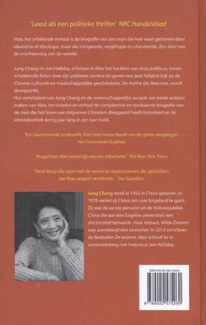 Mao, het onbekende verhaal is de biografie van een man die niet werd gedreven door idealisme of ideologie, maar die intrigeerde, vergiftigde en chanteerde. Zijn doel was de overheersing van de wereld. Jung Chang en Jon Halliday schetsen in Mao het karakter van deze politicus, tonen nieuwe, schokkende feiten over zijn politieke carrière en geven een zeer heldere kijk op de Chinese culturele en maatschappelijke geschiedenis. De mythe die Mao was, wordt doorgeprikt. Het verteltalent van Jung Chang en de wetenschappelijke aanpak van beide auteurs maken van dit boek de compleetste en leesbaarste biografie van de man die het leven van miljoenen Chinezen diepgaand heeft beïnvloed en de wereldpolitiek dertig jaar lang in zijn ban hield. Mao, het onbekende verhaal is een magistrale biografie die leest als een politieke thriller.