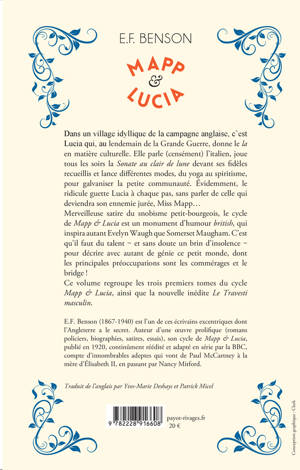 Ce volume regroupe les trois premiers tomes du cycle Mapp & Lucia, ainsi que la nouvelle inédite Le Travesti masculin.