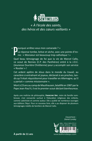 Quel beau témoignage de foi que la vie de Marcel Callo, ce scout de Rennes (C.P. des Panthères) entré à la J.O.C. (Jeunesse Ouvrière Chrétienne) pour y accomplir son service "Routier" ! Cet ardent apôtre de Jésus dans le monde du travail, au caractère si entraînant et joyeux, déclarait à ses proches, tandis qu'il était réquisitionné pour travailler en Allemagne, qu'il y partait "comme missionnaire". Déporté dans un premier temps à Flossenburg, il est ensuite dirigé vers le camp de Mauthausen, où il meurt, à 23 ans. Il a été béatifié en 1987 par le Pape Jean-Paul II. Il est le premier scout déclaré bienheureux.