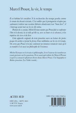 Il est habituel de considérer "À la recherche du temps perdu" comme le roman du devenir-écrivain. C'est oublier que le protagoniste n'aspire pas seulement à réaliser une vocation littéraire aboutissant à un "beau livre", il s'interroge avant tout sur la vie elle- même. Partant de ce constat, Michel Erman montre que Proust fait se confronter l'être et le devenir, la vie telle qu'elle va, avec ses heurs et ses absences, et les imprévus du vivre et du livre. Cette approche originale du texte proustien ouvre au lecteur des portes jusque-là cachées et prend la forme d'une méditation sur la vie et le temps. On verra que Proust n'est pas seulement un immense romancier mais qu'à sa manière il est aussi un philosophe de l'existence.