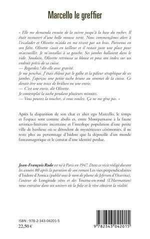 Après la disparition de son chat et alter ego Marcello, le temps et l'espace sont comme abolis et, entre Montparnasse à la faune artistico-littéraire incertaine et l'interlope population d'une petite ville de banlieue où se déroulent de mystérieuses cérémonies, il ne reste plus au personnage d'Isidore que la dépouille d'un monde fantasmagorique et le constat d'une identité perdue.