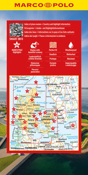 De vernieuwde wegenkaart Denemarken van Marco Polo op scheur- en watervast papier! Zeer helder en prettig leesbaar, waardoor zelfs de kleinste dorpjes en wegen te vinden zijn. Met Highlight-sterren voor de Top15 van het gebied. De afstanden tussen plaatsen staan duidelijk aangegeven, evenals veel toeristische en praktische informatie, zoals pittoreske routes, natuurparken, bezienswaardigheden en tankstations. Met legenda o.a. in het Nederlands.
