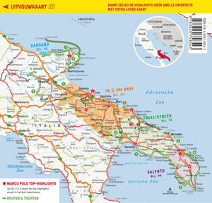 Marco Polo reisgids voor Puglia/Apulië. Handig pocket formaat, boordevol informatie, met uitneembare kaart achter in het boek. Met ‘insider tips’ om de streek te ontdekken, de TOP 10 met highlights van de regio in één oogopslag, up-to-date informatie in overzichtelijke hoofdstukken: sightseeing, eten & drinken, winkelen, uitgaan, verblijf, routes & tochten, voor kinderen, feesten, festivals & evenementen, internet tips, praktische info van a tot z, een taalgidsje, plattegronden en namenregister.
