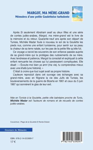 Après Si seulement Abraham avait eu deux filles et une série de contes judéo-arabes, Margot, ma mère-grand est le livre de la mémoire et du retour. Quarante-neuf ans après son départ de Tunisie, Michèle Madar foule à nouveau le sol de la Goulette les pieds nus, comme une enfant tunisienne, pour sentir sur sa peau la chaleur de sa terre natale, sur les pas de la petite fille qu'elle fut. Ce voyage a ravivé les souvenirs de son enfance passée auprès de sa grand-mère qui la protégea des rudoiements de sa mère. Avec tendresse et patience, Margot la consolait et expliquait à cette enfant remuante les choses qui lui paraissaient compliquées. Elle disait: Écoute-moi bien ya amri (ma vie), tu comprendras mieux avec une khafa (une histoire). C'était à croire que tout sujet avait sa propre histoire. L'auteure reproduit dans cet ouvrage ces échanges avec sa grand-mère, avec en filigrane la vie des Juifs de Tunisie, les bouleversements de la guerre de Bizerte en 1961 et ceux du 5 juin 1967 qui sonnèrent le glas de leur exil.