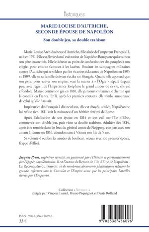 Marie-Louise Archiduchesse d'Autriche, fille aînée de l'empereur François II, naît en 1791. Elle est élevée dans l'exécration de Napoléon Bonaparte qui a vaincu son père quatre fois. Elle le déteste au point de confectionner des poupées à son effigie, pour ensuite s'amuser à les lacérer. Pendant les campagnes militaires contre l'Autriche qui se soldent par les victoires éclatantes de Napoléon en 1805 et 1809, elle et sa famille doivent s'exiler en Hongrie. Quand elle apprend que son père, pour sauver son empire, veut la marier à l'Ogre séparé depuis peu, avec regret, de l'Impératrice Joséphine le grand amour de sa vie, elle est effondrée. Mariée contre son gré en 1810, elle parcourt en larmes le chemin qui la conduit en France. Et là, après les premiers contacts, elle tombe amoureuse de celui qu'elle haïssait. Impératrice des Français à dix-neuf ans, elle est choyée, adulée, Napoléon ne lui refuse rien. 1811 voit la naissance d'un héritier titré roi de Rome. Après l'abdication de son époux en 1814 et son exil sur l'Ile d'Elbe, commence son double jeu, puis vient sa double trahison. Adultère dès 1814, après être tombée dans les bras du général comte de Neipperg, elle part avec son amant à Parme en 1816, abandonnant à Vienne son fils de 5 ans. Sa volonté d'oublier les années de bonheur, vécues avec son premier époux, frappe d'effroi.