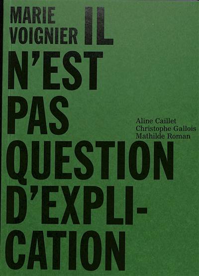 "Dans mes films, j’essaie de garder des situations ouvertes, non résolues, non expliquées. Le titre « Il n’est pas question d’explication » pourrait être une phrase que le cinéma, si c’était une personne, se répéterait à lui-même. La tentation d’explication, et là encore il ne faut pas être simpliste, peut se situer autant dans le cinéma de propagande que dans le cinéma hollywoodien où un destin va se dérouler, une chose en entraînant une autre… mais ça peut aussi être un cinéma engagé, un cinéma de lutte, qui vient expliquer un soulèvement. Il n’y a pas d’unilatéralité ni de diabolisation de l’explication. Je choisis d’y résister par moment alors que, à d’autres, j’explique des choses et j’en ai profondément conscience. Quand je vois ce mot, « explication », il me dit quelque chose de cette dialectique cinématographique." Marie Voignier