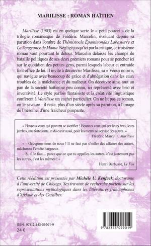 Marilisse (1903) est en quelque sorte le « petit poucet » de la trilogie romanesque de Frédéric Marcelin, évoluant depuis sa parution dans l'ombre de Thémistocle Épaminondas Labasterre et La Vengeance de Mama. Négligé jusqu'ici par la critique, ce troisième roman vaut pourtant le détour. Marcelin se penche ici sur le quotidien des petites gens, parmi lesquels labeur et entraide font ofifce de loi. Il invite à découvrir Marilisse, sa « Vénus noire », qui navigue avec beaucoup de grâce et d'abnégation dans les eaux troubles de la malchance et du malheur. On découvre ainsi tout un pan de la société haïtienne peu connu, ici représenté avec brio et inventivité.