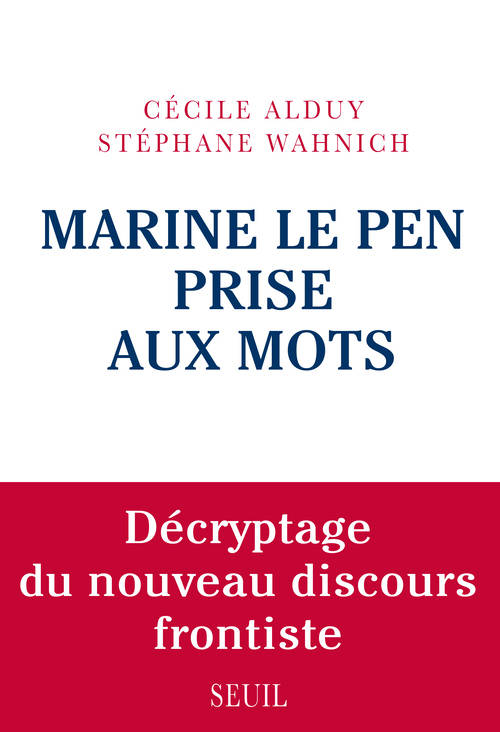 A l'heure ou Marine Le Pen s'impose sur la scene politico-mediatique et engrange des scores electoraux sans precedent, il est urgent de decrypter la logique de son discours et d'expliquer son efficacite rhetorique. Que dit-elle qui parle tant a tant d'electeurs ? Avec quels mots, quels mythes, quelles images parvient-elle a faire mouche la ou la parole politique semble partout ailleurs discreditee ? Et dit-elle autre chose que son pere ?Pour la premiere fois, une analyse litteraire et statistique de pres de cinq cents textes permet de mesurer tres precisement l'originalite de cette nouvelle parole frontiste. Discours, editoriaux, entretiens radio et televises des deux presidents successifs du Front national sont passes au crible d'un double traitement informatique et rhetorique afin de cerner au plus pres continuites et differences.Dans sa strategie de A« dediabolisation A», Marine Le Pen a entrepris de reecrire le code frontiste : elle en a modernise le vocabulaire, les themes et l'image. Mais derriere le changement de style, le sens de l'offre politique du Front national a-t-il change ? Il n'est pas certain qu'il suffise d'adopter les mots de la Republique pour en porter veritablement les valeurs.Professeure de litterature francaise a Stanford University, Cecile Alduy est l'auteur de Politique des ""Amours"" (Droz, 2007) sur l'emergence de l'identite nationale a la Renaissance.Professeur-associe a l'Universite Paris-Est-Creteil en communication politique et publique, Stephane Wahnich a coecrit Le Pen, les mots (La Decouverte, 1997).