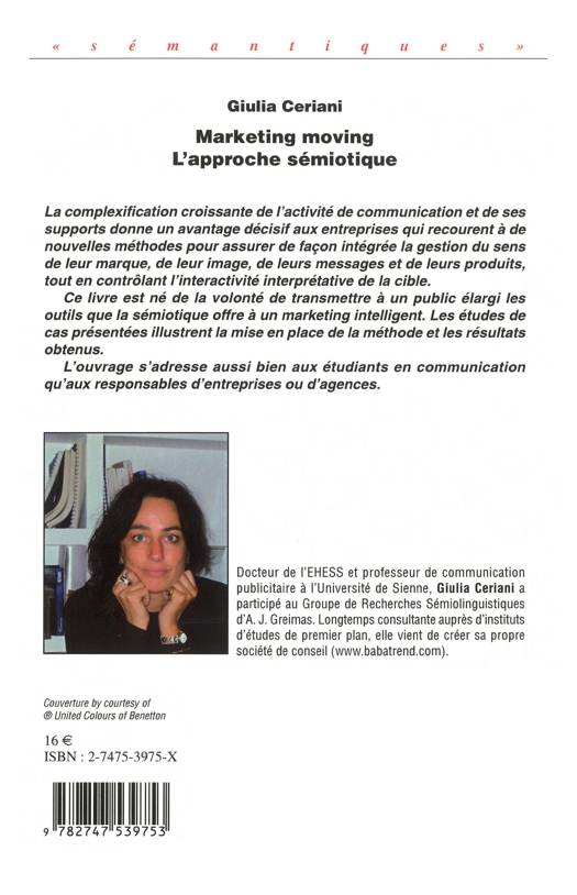 Devant la complexification croissante de l'activité de communication et de ses supports qui donne un avantage décisif aux entreprises qui recourent à de nouvelles méthodes pour assurer de façon intégrée la gestion du sens de leur marque et de leurs produits, l'auteur a voulu transmettre à un public élargi les outils que la sémiotique offre à un marketing intelligent. Les études de cas présentées illustrent la mise en place de la méthode et les résultats obtenus. L'ouvrage s'adresse aussi bien aux étudiants en communication qu'aux responsables d'entreprises ou d'agences.